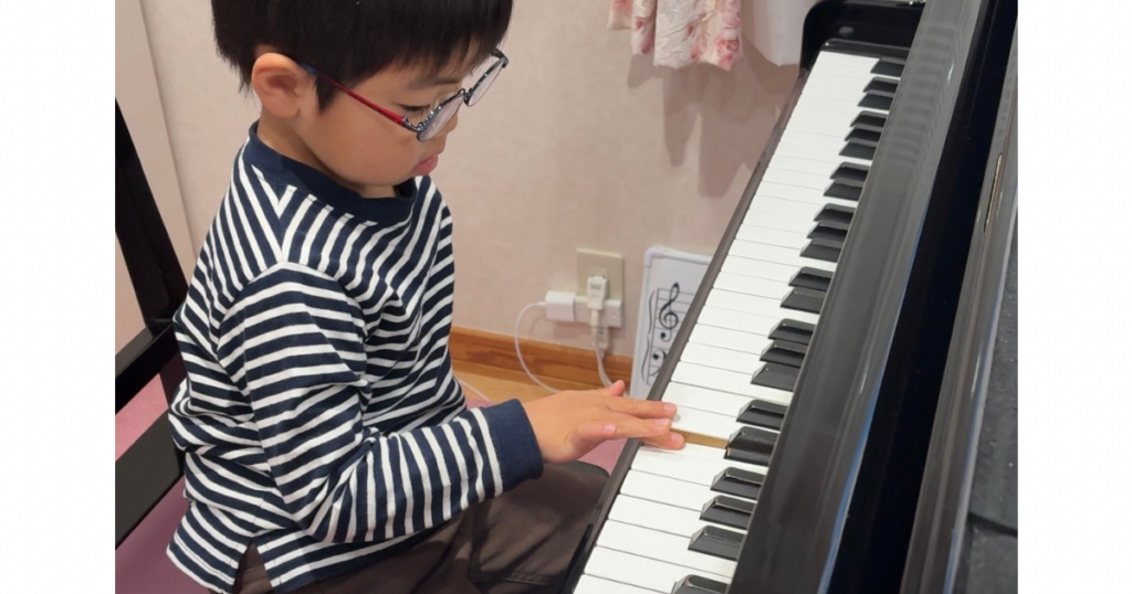 ピアノ体験レッスンで、たくさん褒めてもらえて、喜んでいました。