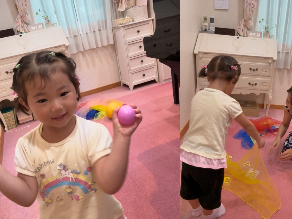 小さなお子様には、ピアノレッスンの中で、リトミックも取り入れます。